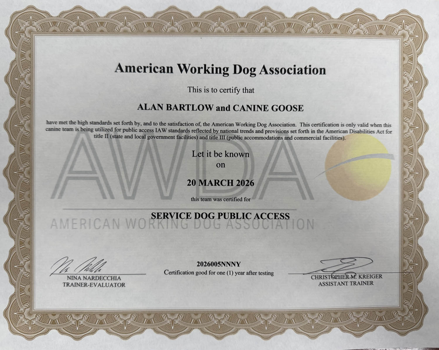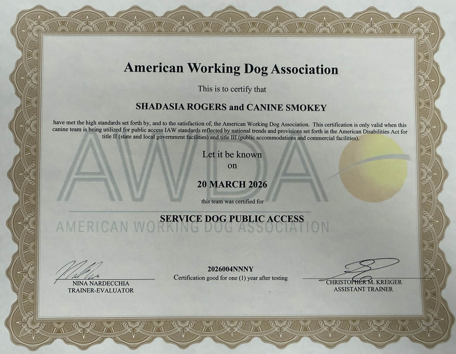 American Working Dog Certifications